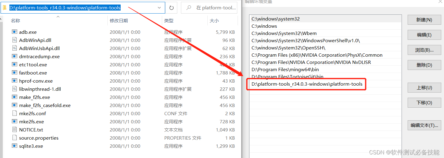 (3)点击“新建”,将解压后的adb文件地址,配置在环境变量中。