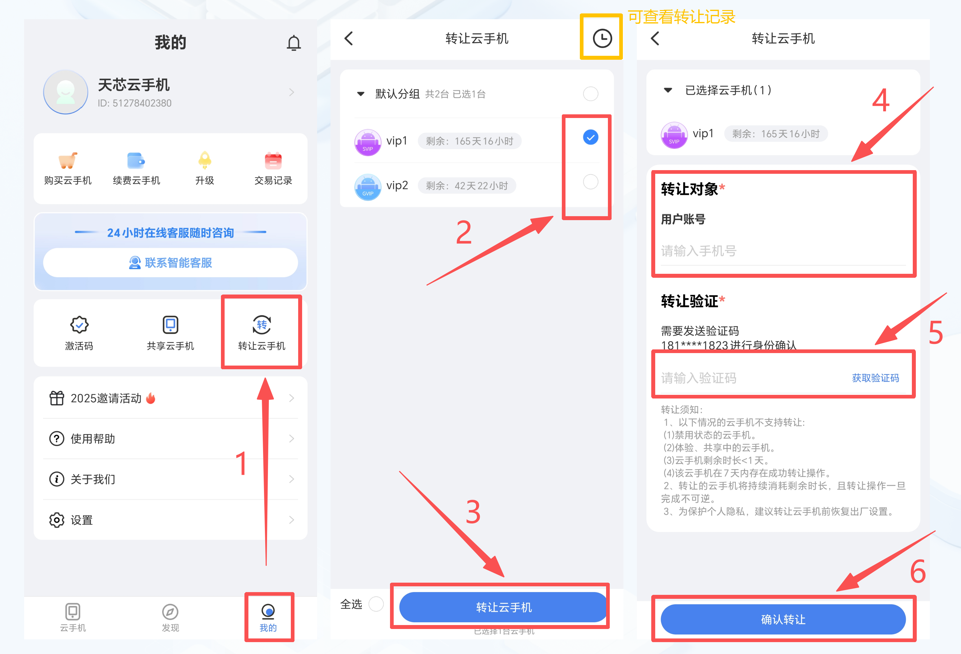 云手机转让功能