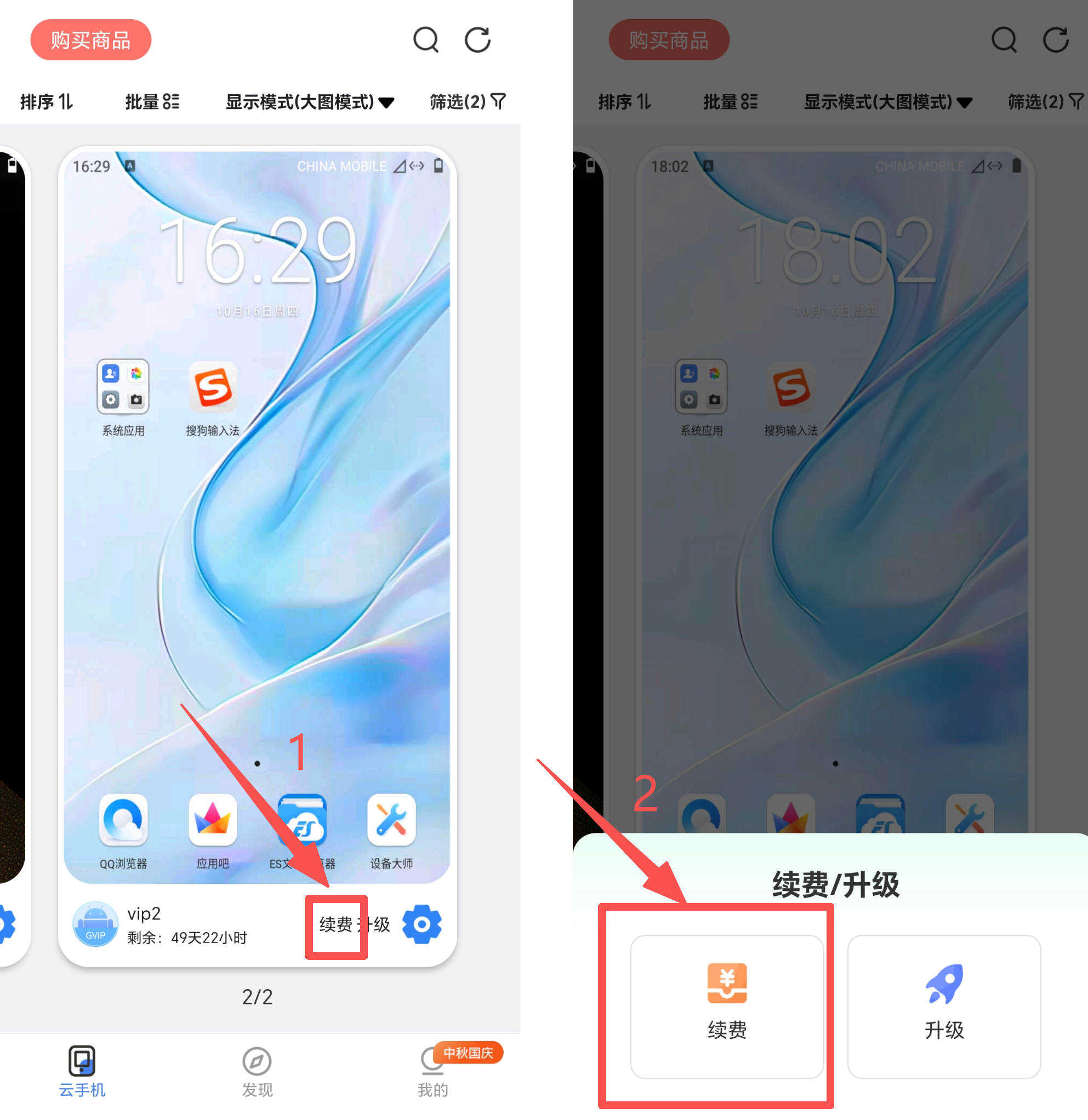 以下是在PC客户端内续费云手机的具体流程: