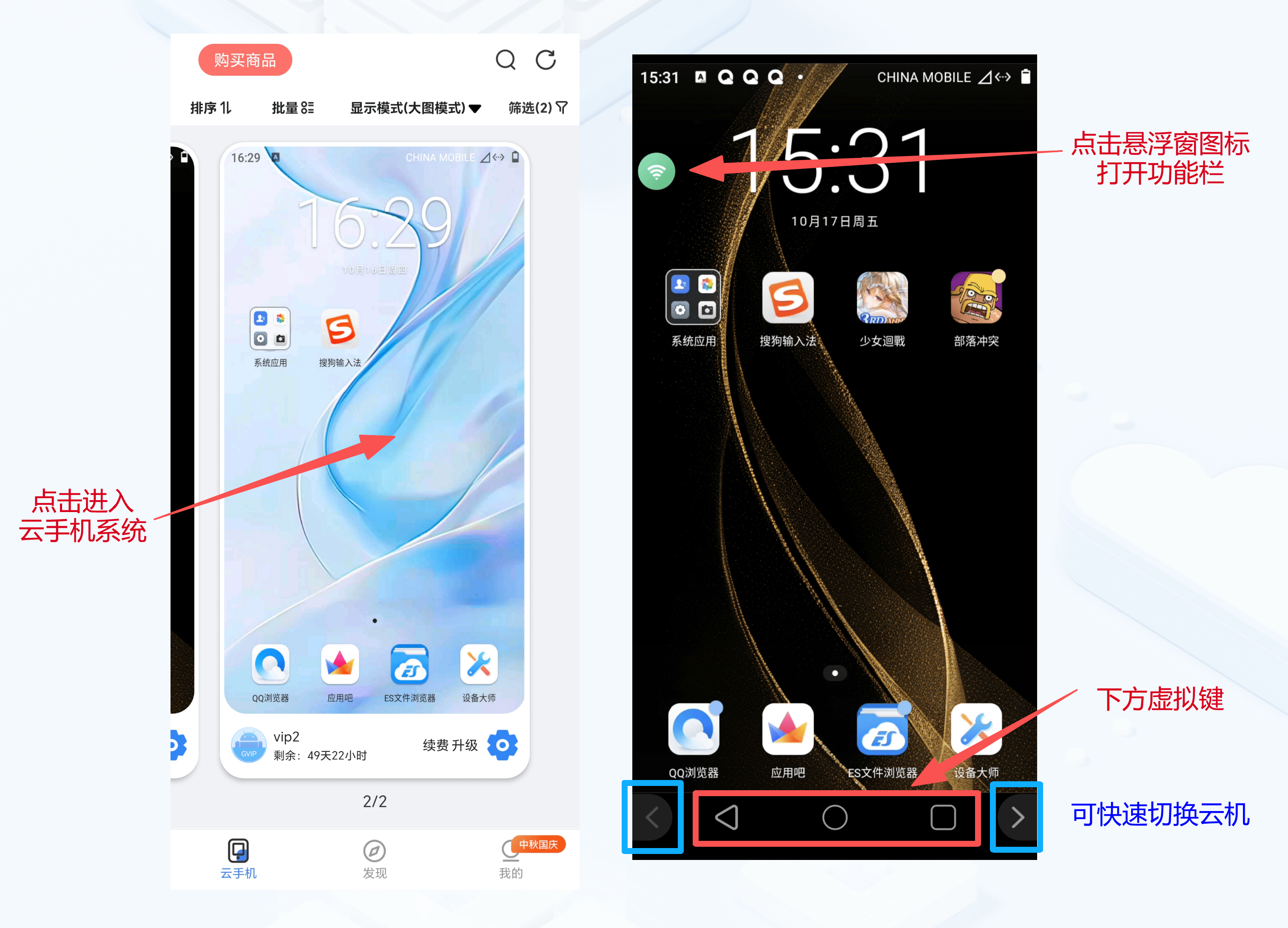 云手机名称:点击可选择切换不同云手机