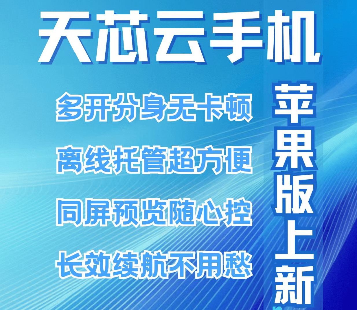 苹果用户有福啦!天芯云手机苹果版正式上新,无需担心设备性能束缚,一键开启流畅云端之旅,无论是大型游戏,还是多应用并行,都能轻松驾驭,快来探索全新玩法。